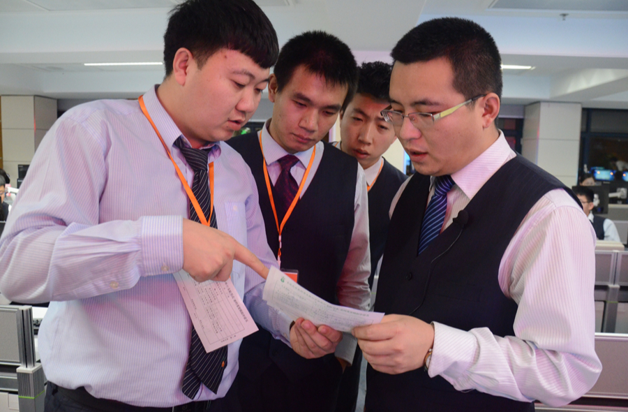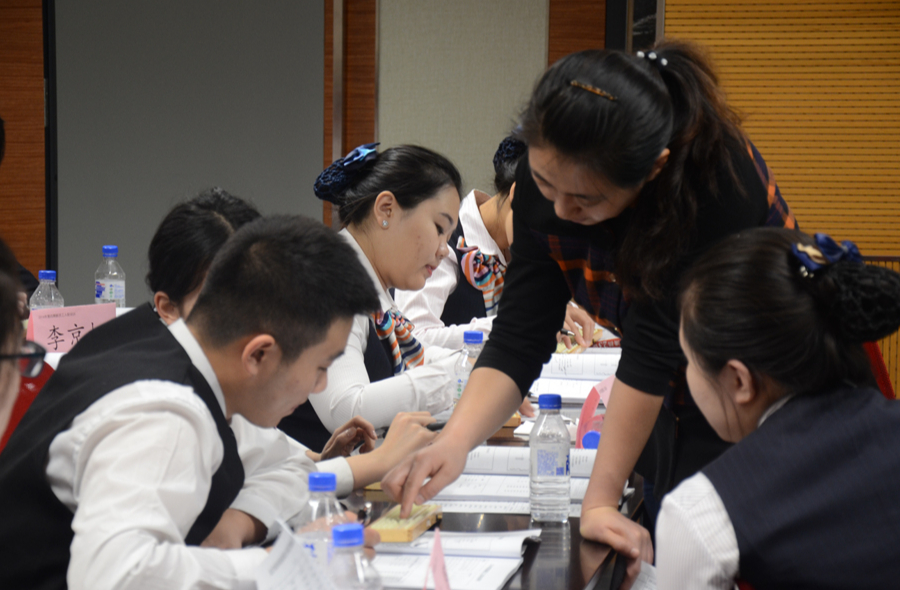 The 4th term new employee orientation training class of 2014 the teacher is guiding the trainees at the break of an accounting settlement course