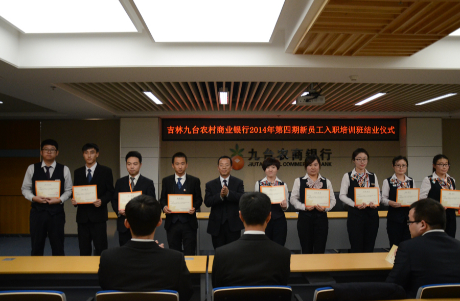 The 4th term new employee orientation training class of 2014 secretary Gao of the party committee is issuing course-completion certificates to the tr