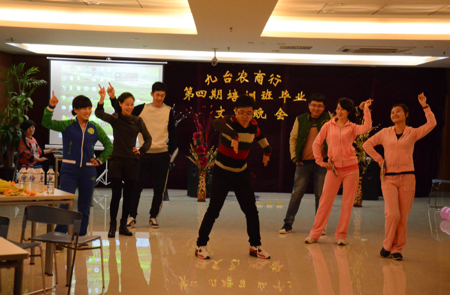 The 4th term new employee orientation training class of 2014 the meat roasting and dancing at a party